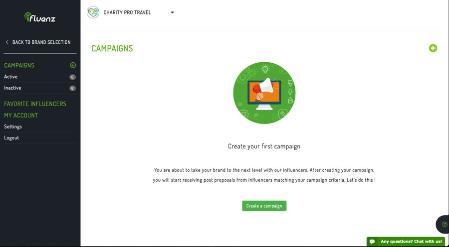 Avec Ifluenz, vous sautez tout cela et commencez à créer des campagnes dès que vous êtes connecté. L’interface simple et attrayante vous guide tout au long du processus. Il n’est pas nécessaire de lire les fichiers d’aide et rien à l’écran ne vous distrait de chaque étape. Vous vous connectez, remplissez le profil de votre entreprise, puis vous êtes guidé tout au long du processus de configuration de la campagne. Rédiger le brief est plus que simple : il vous suffit de remplir les blancs. Comment s’appellera la campagne ? Quel est le but ? Quelle est la catégorie de votre entreprise ? Quels sont vos critères pour les influenceurs ?
